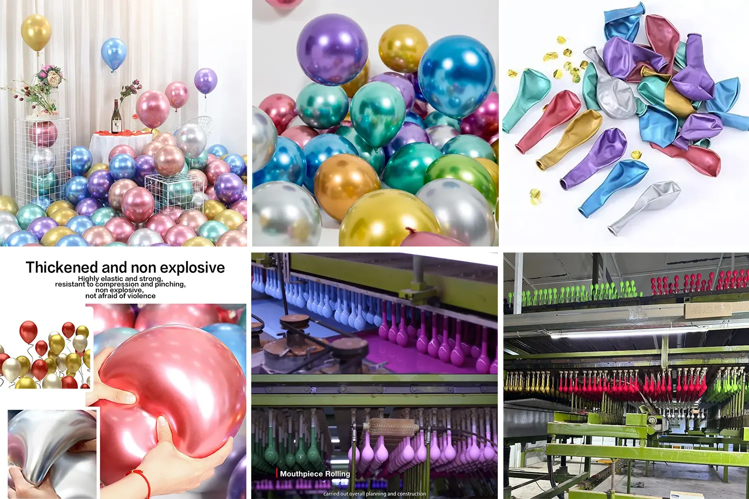 Fabrică binecunoscută: adoptă modul de producție modern și investește în mai multe linii de producție complet automate de baloane, producând peste un milion de baloane din latex crom de 10 inci de înaltă calitate în fiecare zi, garantând pe deplin livrarea stabilă și la timp a comenzilor de mare volum.