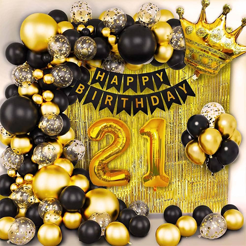 Set de ghirlande cu 21-a ghirlande de baloane: Acest set de 21-a ghirlande cu baloane, culorile principale sunt negru, auriu, argintiu etc., ceea ce este foarte potrivit pentru decorarea bărbaților și femeilor la petrecerea de 21 de ani. Ele pot fi agățate pe ușă sau pe perete și sunt, de asemenea, foarte potrivite pentru utilizare în interior și exterior pentru a crea o petrecere unică de 21 de ani pentru bărbați sau femei.