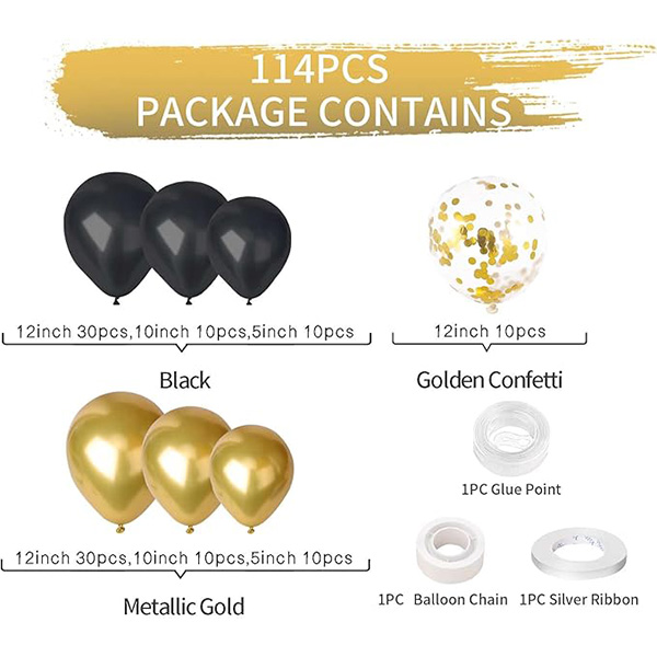 1. Mostre gratuite de truse Balloon Arch negru și auriu pentru un set