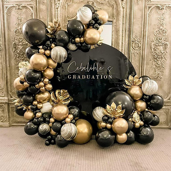 3. Nu numai că susținem dimensiunea balonului din latex pentru kitul de arc de baloane din aur negru personalizat, dar, de asemenea, asistență special pentru a personaliza dimensiunea baloanelor în funcție de nevoile clienților. Puteți alege dintre baloane de latex de 5 inch, 10 inch, 12 inch, 18 inch și 36 inch pentru a vă asigura că vă pot satisface nevoile diverse într-o varietate de ocazii și activități. În plus, pentru a întâlni mai bine diferiții SUAE Cerințe ale decoratorilor de petreceri, fabrica de baloane NIUN® oferă, de asemenea, o serie de servicii personalizate, inclusivG Dar fără a se limita la bordul de fundal, perdeaua de ploaie, pânza de fundal și steagul de naștere și alte elemente decorative. Dacă aveți idei unice sau idei speciale, vă invităm sincer să le împărtășiți cu noi în orice moment. Echipa noastră va face tot posibilul pentru a vă ajuta să transformați aceste idei și idei în realitate.