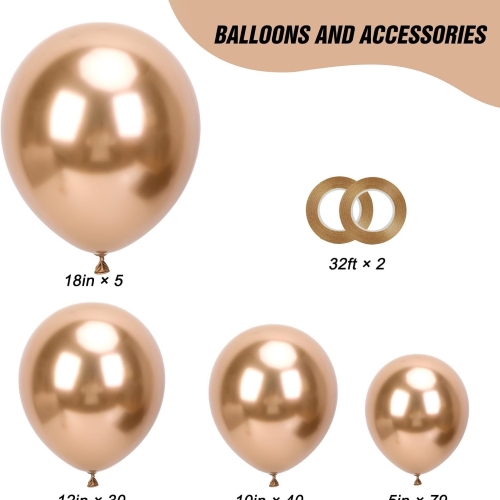 Arcul pentru baloane cu șampanie include cel puțin 100-150 baloane de înaltă calitate în cantitate suficientă pentru a crea un aranjament superb și cu aspect complet. Odată asamblat, creează un cadru de petrecere elegant și atmosferic. Puteți vedea din fotografia de mai jos.