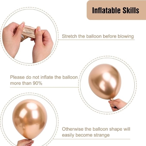 Baloanele noastre cu arc de balon de șampanie sunt realizate din latex natural de înaltă calitate, cu culori strălucitoare și elasticitate bună. Ele păstrează o formă completă după umflare și pot menține efectul de decor mult timp. Produsele au trecut certificările de siguranță EN71-1/2/3, CE, CPC, îndeplinesc standardele globale de vânzări și sunt sigure pentru toate părțile și evenimentele.