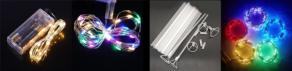 Benzi de lumină cu LED-uri, tub din plastic, cană balon, pene |