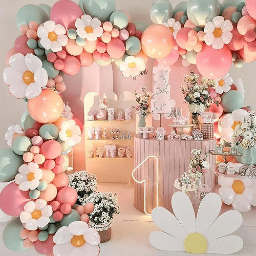 Petrecere de ziua de nastere: Ghirlanda de baloane cu margarete poate fi folosita ca decor de fundal pentru petrecerile de aniversare, potrivita pentru aranjarea la petrecerile de aniversare pentru copii sau femei, creand o atmosfera vesela.