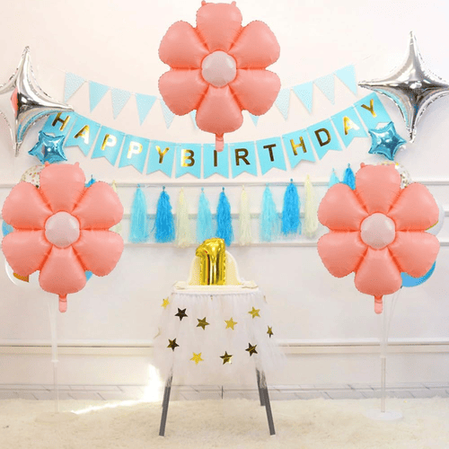 Baloanele din folie cu flori vin cu diferite forme, dimensiuni și culori. Include în principal o floare cu formă de frunze și o singură formă de floare. Culorile lor sunt în principal în nuanțe mai strălucitoare. Cum ar fi roz, roșu, violet, portocaliu etc. Pot fi folosite într-un singur mod sau combinate cu alte baloane pentru a face ghirlanda de baloane. De exemplu, adăugați mai multe baloane din latex pentru a face trusa de ghirlande de baloane din folie de flori.