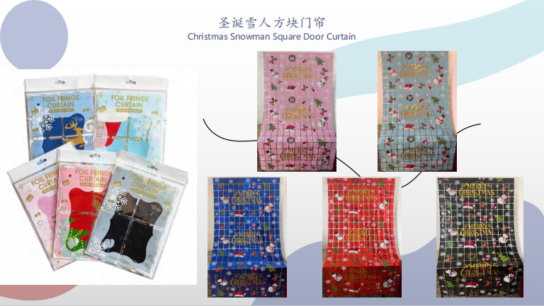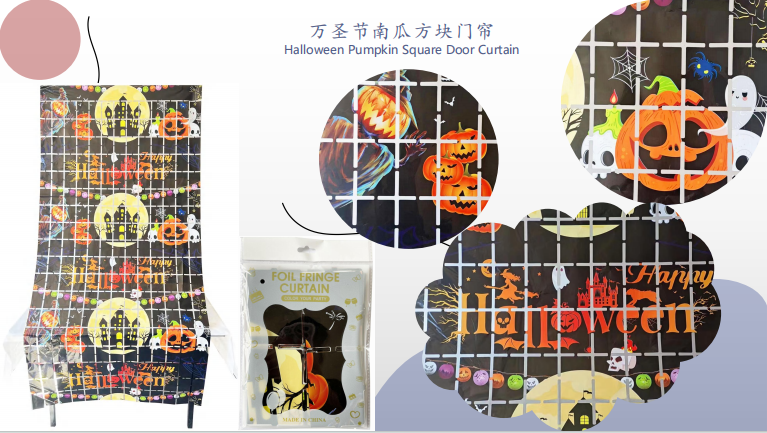 Cum ar fi perdeaua de folie verde și roșie cu temă de Crăciun, perdea de folie neagră și portocalie cu temă de Halloween, și perdea de folie cu dovleci, lilieci, păianjeni și alte forme, care pot fi folosite pentru decorarea de vacanță în case, mall-uri, baruri și alte locuri.