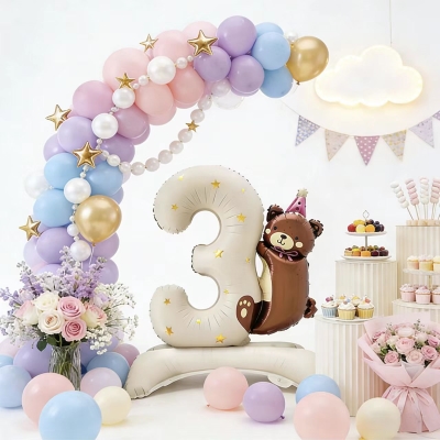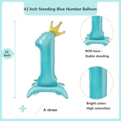 Thebaloane cu numere din folie în picioaredecoratiunile au baze gonflabile speciale. Ei stau ferm. Nu este nevoie de suport suplimentar. Plasarea este flexibilă și gratuită. Ele vin în multe culori. Culorile includ albastru, roz și argintiu. Stilurile de numere sunt complete. Acestea acoperă cifre de la 0 la 9. Se potrivesc bine cu diferite teme. Temele includ vârstele de naștere și sărbătorile aniversare.