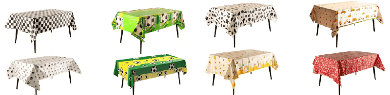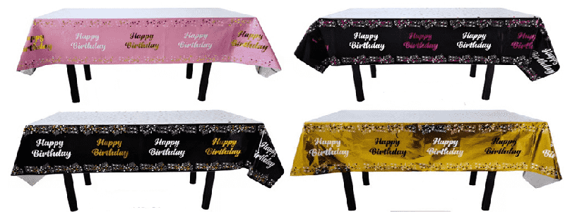 culoare curcubeu, fata de masa din folie cu animale din desene animate si modele de tort, potrivita pentru petrecerile aniversare ale copiilor; auriu, argintiu, culoarea laser cu modele de stele și litere, potrivite pentru petreceri de aniversare a adulților, sărbători aniversare, petreceri prietene etc., pot fi aranjate în mesele de familie, mesele de petrecere la hotel, mesele de picnic în aer liber și alte scene.