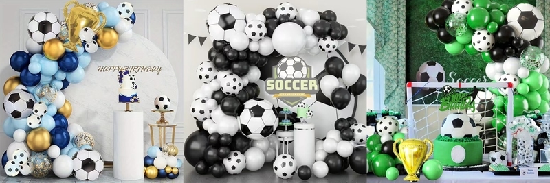 1. Când personalizați seturile de baloane, puteți utiliza doar baloane de culoare verde sau albastru și puneți câtevabaloane imprimate fotbal, apoi se dovedește a fi un set foarte frumos ca în imaginea de mai jos: