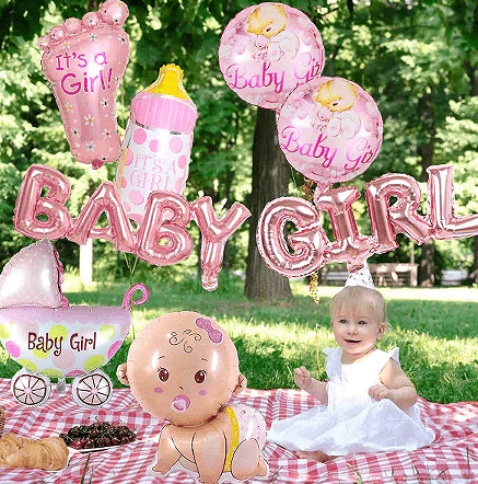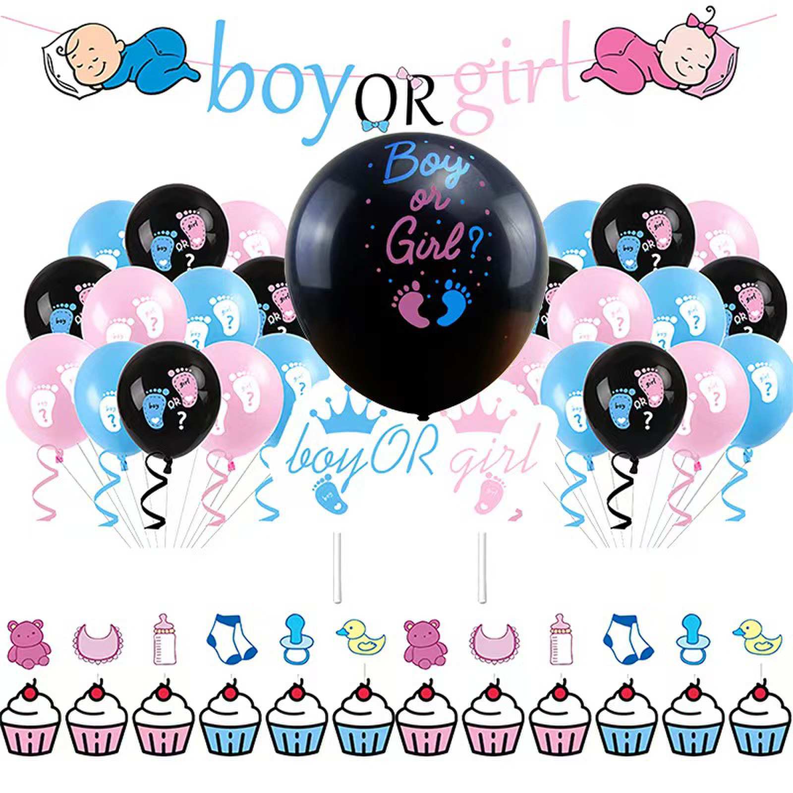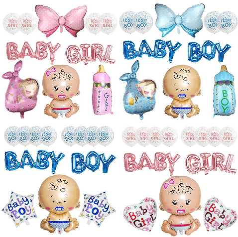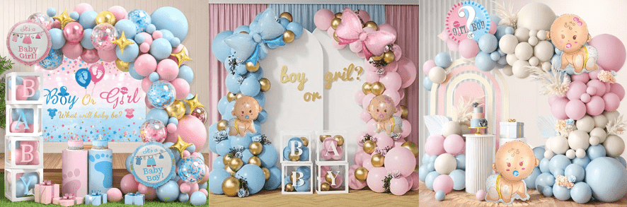 Setul de baloane de bază este asortat în principal cu două culori principale de roz și albastru, iar unele baloane de paiete și baloane cu litere de aluminiu de aceeași culoare sunt adăugate ca decor.