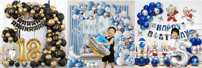 Stilul de baza este un balon din latex La multi ani in aceeasi culoare sau complementara, cuLa mulți ani scrisoare baloane din foliesaubaloane cu folie numerică. Stilurile clasice au balon cu gel cu pudră Macaroon, balon din folie roz Happy Birthday, balon din latex negru, balon din folie cu număr de aur. Baloanele din latex pot fi înșirate într-un lanț de baloane și atârnate pe perete sau tavan, cu baloane din folie ca centru vizual și o cantitate mică de ornamente cu panglică pentru a crea rapid o atmosferă de petrecere simplă și texturată.