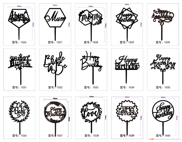 În calitate de furnizor de toppers de torturi la mulți ani în China, Borun Factory vinde o mare varietate de toppers de tort de aniversare acrilică în vrac. În prezent, oferim o mare varietate de teme, cum ar fi Fashion Flower Flower Acorilic Happy Birthday Toppers, MR și doamna Toppers Cake, toppers pentru tort de logodnă, toppers pentru torturi aniversale de nuntă, toppers pentru torturi de sărbătoare de absolvire și multe altele. Aceste modele diferite sunt confecționate din acrilic de înaltă calitate și sunt disponibile într-o varietate de culori, adăugând o atmosferă festivă oricărei petreceri. Folosiți -le pentru a vă decora sărbătoarea și a surprinde câteva fotografii elegante, adăugând o notă izbitoare.
