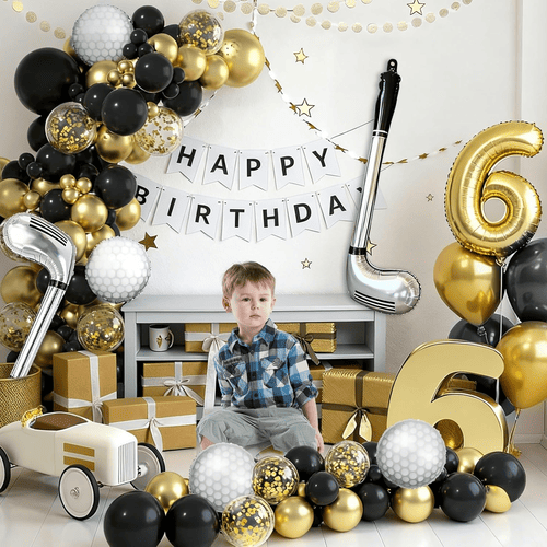 Pe langa baloane, poti adauga si cateva accesorii pentru a adauga stilul, cum ar fi fundalul cu tema de golf sau alte decoratiuni tematice. De asemenea, puteți folosi baloanele din kit pentru a crea alte efecte. Cum ar fi gaură într-un set de baloane din folie sau gaură într-un set de baloane din latex. Toate pot face efectul perfect la petrecerile tale.