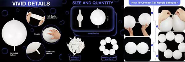 Baloanele noastre de legătură rapidă ies în evidență cu designul lor unic end-to-end, eliminând nevoia de instrumente. În comparație cu baloanele tradiționale, procesul avansat de conectare a baloanelor de legătură este mai simplu și mai rapid, permițându -vă să decorați mai eficient petrecerea sau locul de evenimente.