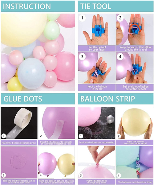 Kit de ghirlandă cu baloane de înghețată macaroon conține baloane din latex de diferite culori și dimensiuni, pudră de maca, albastru maca, galben maca, maca verde și maca violet, precum și baloane lungi de diverse culori maca și baloane de înghețată din folie. După ce aceste baloane sunt umflate, acestea sunt asamblate prin lanțuri de baloane, puncte de lipici și panglici pentru a completa o frumoasă ghirlandă cu arc cu balon de înghețată de macaroon. Garlandul colorat de arc cu baloane macaroon poate fi special conceput pentru petrecerea sau evenimentul tău. Este o alegere perfectă pentru petreceri în aer liber, petreceri școlare, petreceri de companie sau familie, sărbători de absolvire, decorațiuni de vacanță și jocuri în aer liber, în special potrivite pentru zilele de naștere ale copiilor, petreceri pentru copii, revelații de gen, unicorni, curcubee, sirene, petreceri tematice de înghețată pentru fete sau decorațiuni pentru nunți, duș de mireasă, petreceri de esti. Creați o temă de balon curcubeu pentru petrecerea dvs. sau pentru orice eveniment tematic.