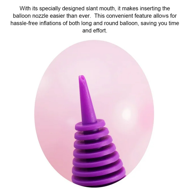 Pentru pompa noastră de mână de modelare a baloanelor, Borun Balloon Factory folosește un design de duză teșită pentru o inserție mai ușoară. Este compatibil cu majoritatea baloanelor din latex și folie. Pompa de balon atrage aer atât de sus, cât și de jos, umflând balonul de două ori mai repede, economisind timp și efort. Acest borunNIUN BRAND BALLOON HAND PUMPeste o alternativă de economisire a respirației la umflarea baloanelor pe gură.