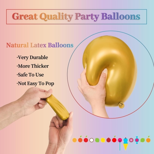 Seturile mici de baloane metalice de înaltă calitate folosesc latex îngroșat și elastic. Au o suprafață lucioasă ca o oglindă. Lumina se reflectă asupra lor. Creează un efect metalic bogat, strălucitor. Baloanele obișnuite din latex arată plate și mate. Aceste baloane se simt de ultimă generație. De asemenea, atrage atenția imediat.