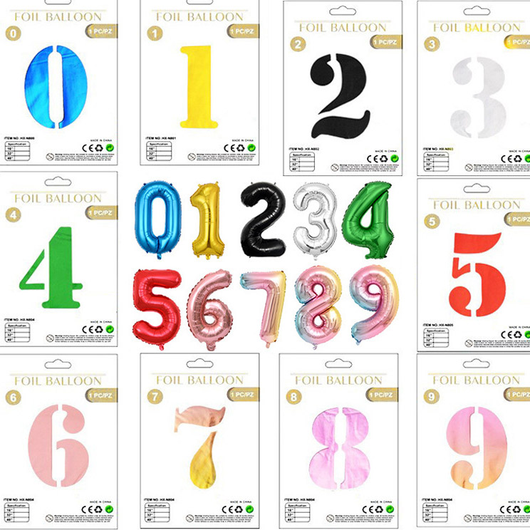 Balloane cu folie de număr: Disponibil în dimensiuni de 16 ", 32" și 40 ".