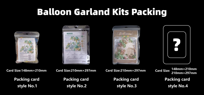 Celălalt sunt pungi OPP cu un card de hârtie. Oferim două stiluri de card de hârtie; puteți alege designul preferat sau vă puteți crea propriul design. Acest ambalaj este mai potrivit pentru vânzările offline, cum ar fi în supermarketuri. Pachetele de baloane pot fi agățate pe rafturi sau expuse pe tejghele. Cardul de hârtie din interior permite clienților să vadă clar stilul pachetului.