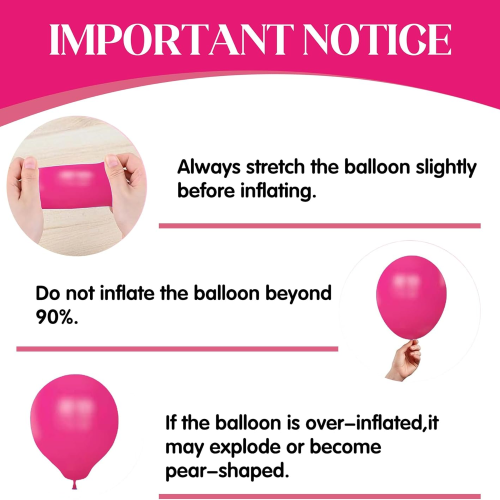 Seturile de ghirlande cu baloane roz și accesoriile acestora pot fi refolosite. Pentru cel mai bun efect vizual, vă recomandăm să folosiți baloane noi pentru fiecare eveniment.