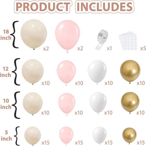 Setul de arc pentru balon alb Pink Beige al brandului NiuN folosește baloane din latex de o calitate mult mai mare decât cele ale semenilor săi.