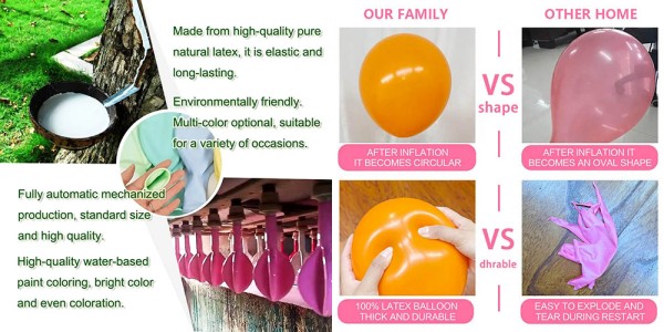 Textura mai puternica: Datorită utilizării de materii prime de înaltă calitate și tehnologie avansată, fiecare dintre baloanele noastre din latex are o textură foarte puternică și culori bogate.