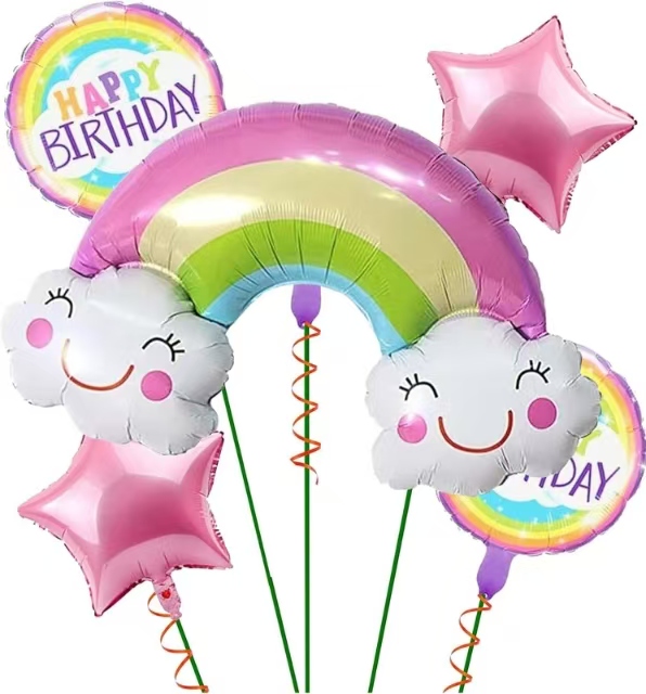 Acest kit de baloane din folie curcubeu este, de asemenea, unul dintre produsele noastre cele mai vândute. Acest kit are o varietate de opțiuni din care să alegeți, care pot fi asortate cu baloane din folie curcubeu, baloane din folie rotunde și stea, baloane din folie numerice și baloane din latex. Dacă doriți să combinați diferite seturi de baloane, vă putem personaliza propriul kit de baloane pentru dvs. Și toate kiturile de baloane din fabrica noastră implementează prețul de scară, dacă achiziționați seturi de baloane cu folie curcubeu în vrac, vă vom oferi prețuri mai favorabile. Formele curcubeului și norilor creează o atmosferă de petrecere memorabilă și unică și le poți folosi în mai multe ocazii, economisind timp și efort pentru a crea diferite stiluri.