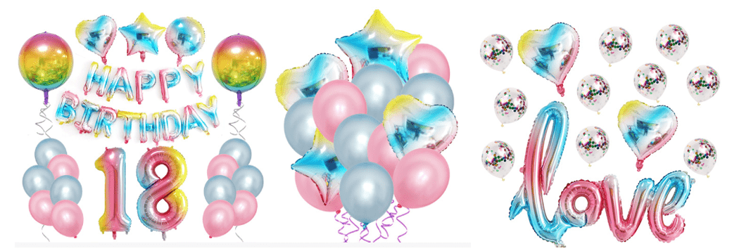 Aspect de culoare: balon din folie cu număr de curcubeu folosind înflorire în gradient, cusături de culoare, dungi curcubeu și alte procese, arătând o varietate bogată de efecte de culoare. Unele produse se bazează pe șapte culori de bază: roșu, portocaliu, galben, verde, albastru, indigo și violet. Prin tehnologia de schimbare treptată a tranziției naturale, ele creează o textură transparentă precum curcubeul după ploaie. Unele produse folosesc coliziunea de culori cu saturație ridicată, cum ar fi îmbinarea roz și albastru, ecou galben și verde, formând un impact vizual puternic și luminând atmosfera de petrecere. Aceste modele de culoare se conformează asociației psihologice a publicului de frumusețe și noroc simbolizate de curcubeu și pot fi, de asemenea, adaptate stilurilor de petrecere cu diferite teme.