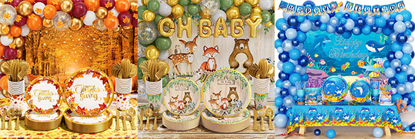 Decorațiunile de petrecere NIUN® și alte stiluri pot fi combinate cu tacâmuri partyr pentru a crea o varietate de stiluri.