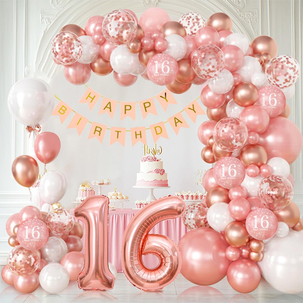 Arcul balonului Sweet 16 acest pachet include baloane din latex, baloane din folie, bannere pentru ziua de naștere, pete de lipici, panglici etc. Dacă aveți nevoi speciale, putem personaliza și dimensiunea, cantitatea, culoarea etc. în cadrul pachetului în funcție de cerințele dvs.s.