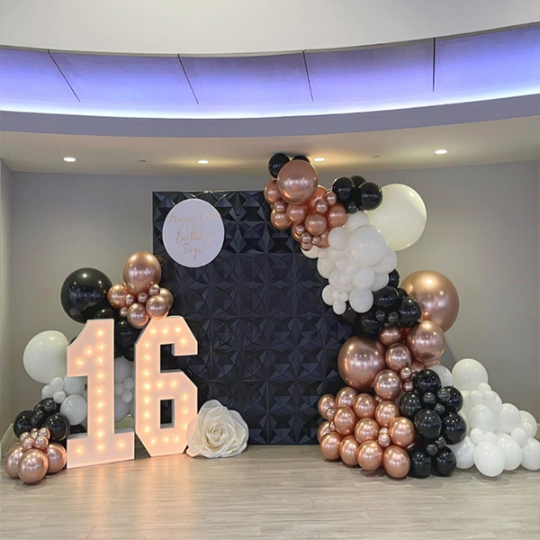 Ghirlandă cu baloane cu 16 led-uri:Fabrica noastră a lansat și o ghirlandă de baloane cu lumină LED de 16 ani. Luminile numerice cu LED sunt realizate din materiale ecologice ABS și LED pentru a oferi efecte de iluminare luminoase și de durată. Lumini LED cu cifre și litere care pot străluci în întuneric. Iluminarea slabă creează o atmosferă relaxată și confortabilă și adaugă un farmec unic oricărei încăperi. Pot fi expuse independent sau agățate pe perete, pe șemineu sau plasate în zona de recepție pentru a fi folosite în timpul evenimentelor sau sărbătorilor. Luminile LED cu numere cu arcade cu ghirlande de baloane, potrivite pentru a crea o atmosferă captivantă de petrecere, reprezintă o recuzită esențială pentru realizarea de fotografii unice și de neuitat, adăugând un sentiment de ceremonie de neuitat la cea de-a 16-a aniversare.