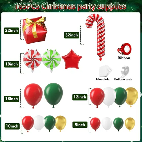 Da, putem adăuga celelalte accesorii de care aveți nevoie în arcul balonului de Crăciun. În acest kit, am adăugat deja lipici cu puncte, bandă de balon, panglică. Și le putem adăuga pe celelalte în funcție de nevoile dvs., cum ar fi pompa de balon, clip de flori și așa mai departe.